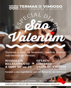 Durante o mês de fevereiro, as Termas de Vimioso convidam os casais a celebrar o Dia dos Namorados (14 de fevereiro), com uma massagem a dois e a oferta do acesso à piscina termal, sauna e banho turco.