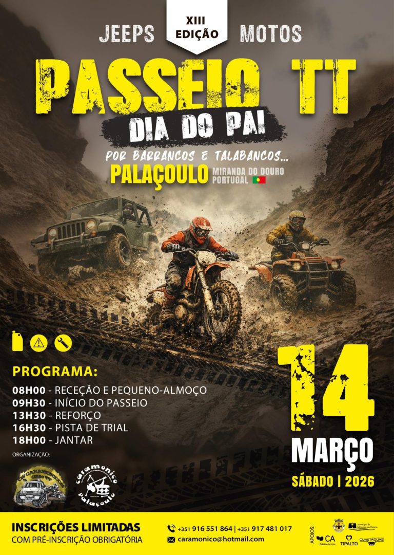 No sábado, dia 14 de março, os montes de Palaçoulo, no concelho de Miranda do Douro, são o trajeto do XIII Passeio de Todo-o-Terreno (TT) “Dia do Pai”, uma iniciativa coorganizada pelo clube motorizado local e a Caramonico – Associação para o Desenvolvimento Integrado de Palaçoulo.