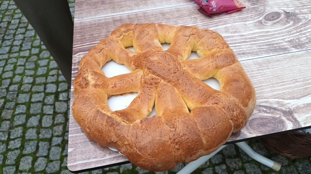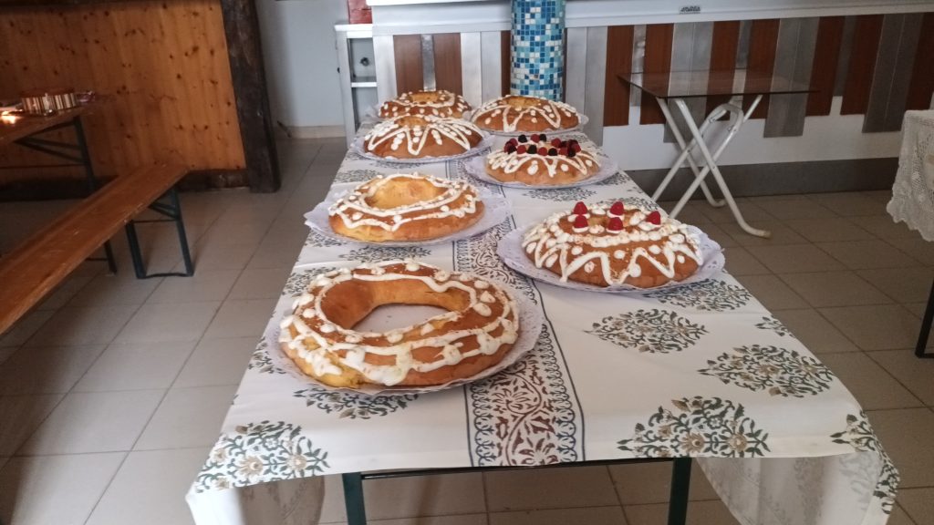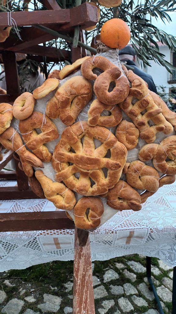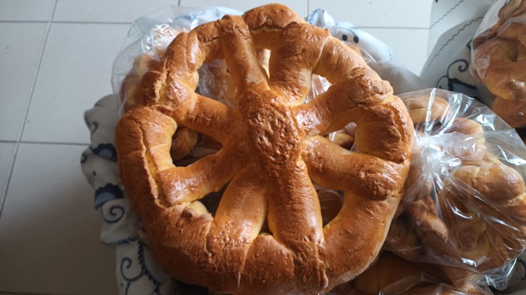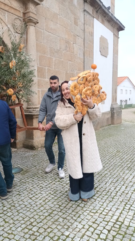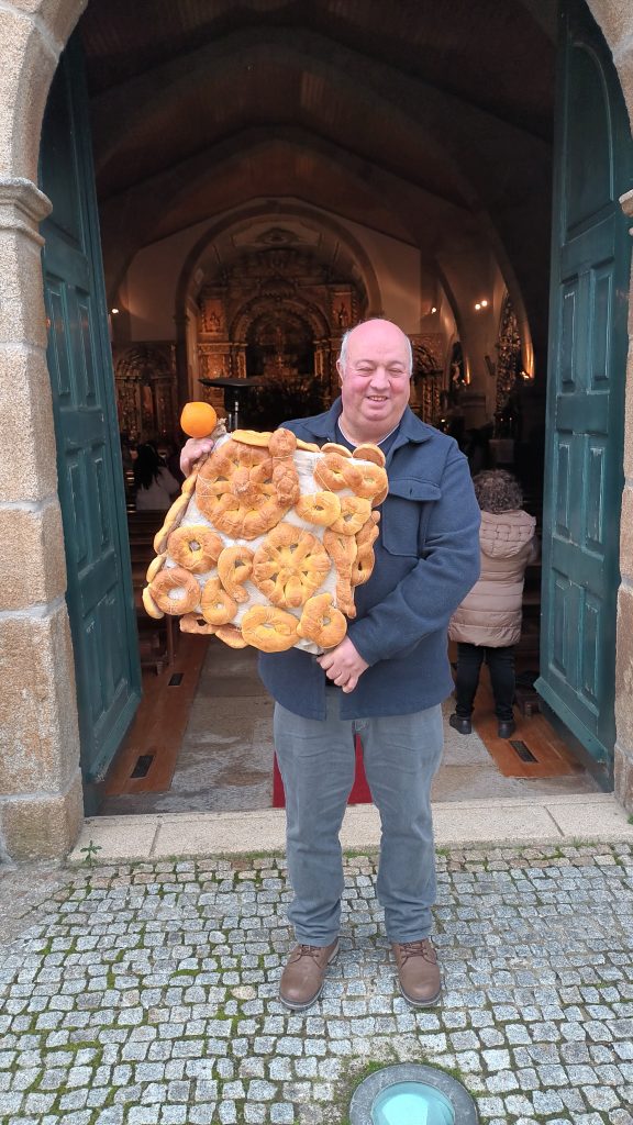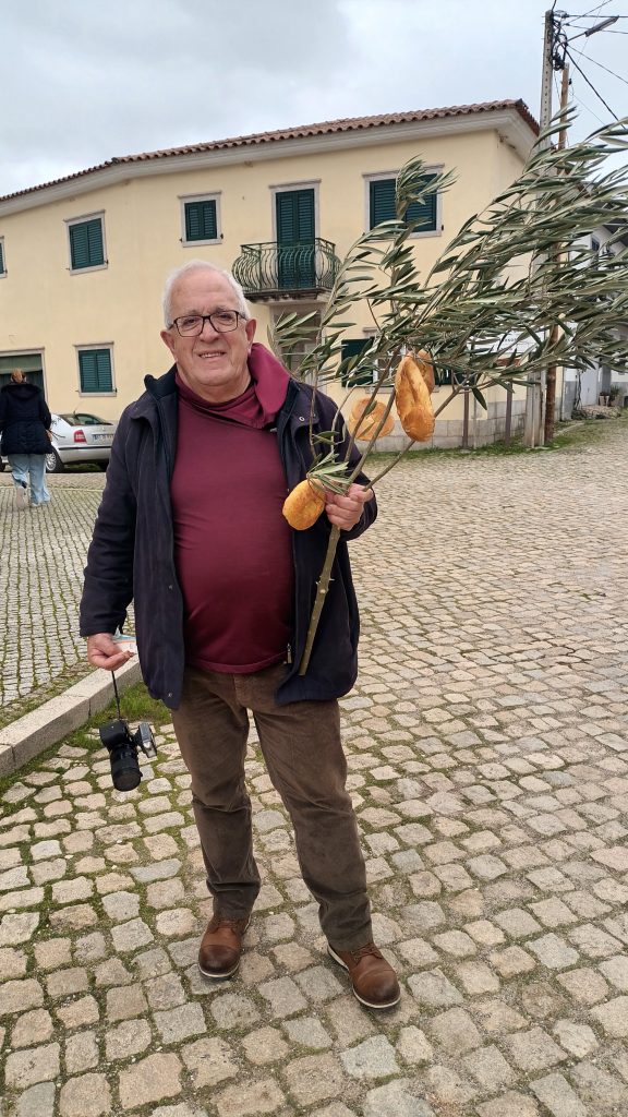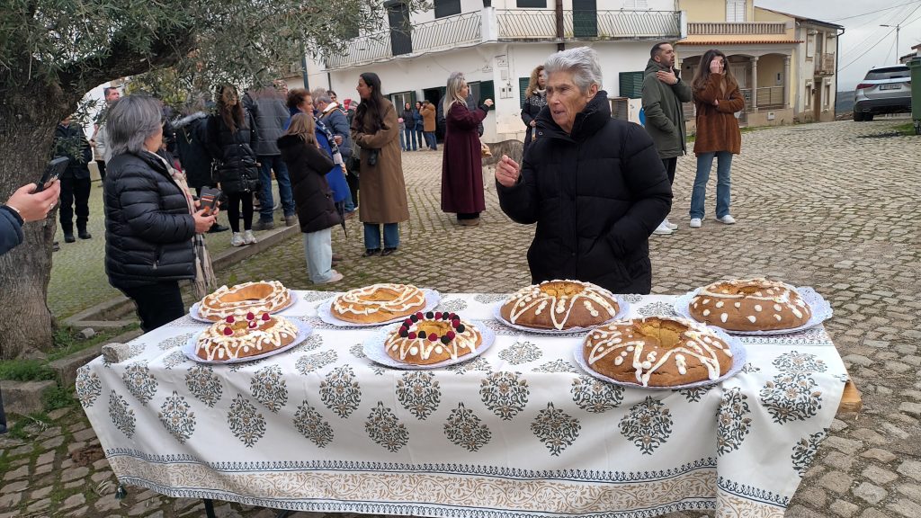 “Os roscos são doces tradicionais feitos pelas mulheres da aldeia, tendo como ingredientes farinha, ovos, açúcar, manteiga, azeite, sumo de laranja e aguardente. Este ano confeccionámos roscos com 120 dúzias de ovos. Tal como acontece todos os anos, dado o gosto das pessoas por este doce tradicional, vendemos os roscos e os ramos rapidamente!”, disse.