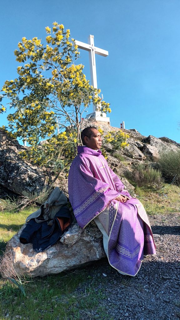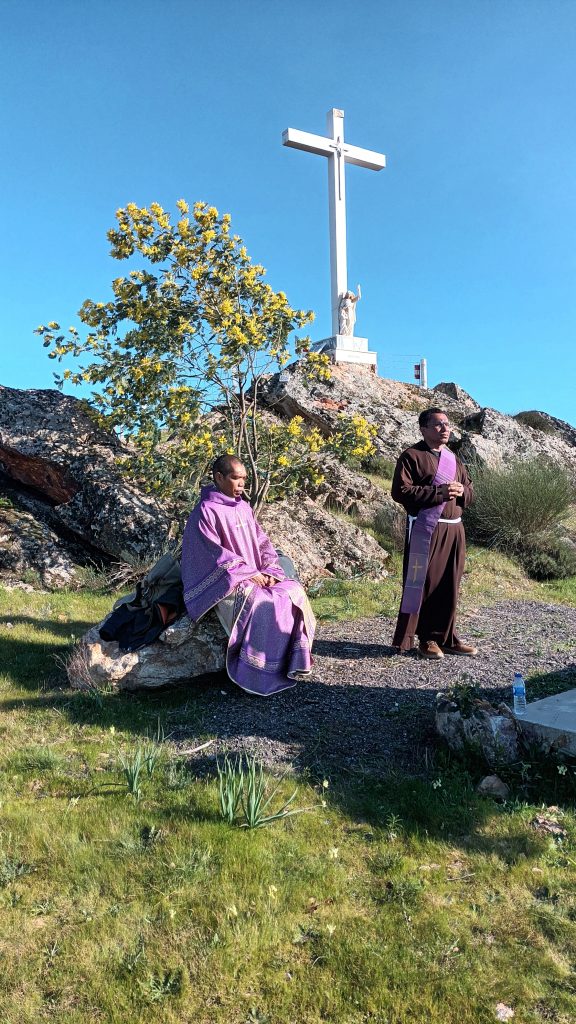 Chegados à Cruz do Serro, o franciscano, Hermenegildo Sarmento, presidiu à missa campal. Na celebração, o sacerdote timorense interpelou a assembleia questionando por que razão se reza a Paixão de Cristo? Ao que o Frade Capuchinho respondeu que é um itinerário para acompanhar e convididir o sofrimento de Jesus e simultaneamente purificar o coração e o olhar.