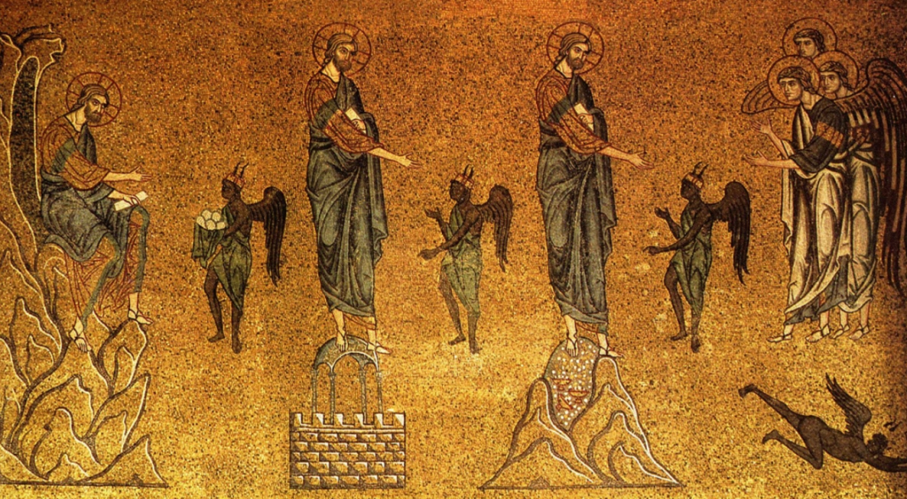 São Mateus diz que «Jesus foi conduzido pelo Espírito ao deserto, a fim de ser tentado». Significa que foi submetido à tentação por vontade do próprio Deus. Efetivamente, a tentação é momento de definição pessoal e, por conseguinte, também de estruturação da pessoa. A tentação do «pão» representa a da riqueza; a tentação do «pináculo» representa a da fama; a tentação dos «reinos» representa a do poder. Através destas tentações, Jesus teve de decidir se queria viver contando com Deus ou em concorrência com Ele. A forma como responde a Satanás mostra que escolheu a primeira possibilidade: «adorarás o Senhor teu Deus».
