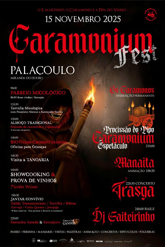 “Inspirado no tradicional Magusto de São Martinho, o Caramonium Fest concilia a tradição, a modernidade e a festa, tendo como dois símbolos o pipo [de vinho] e o caramono [santo]”, explica a associação organizadora.