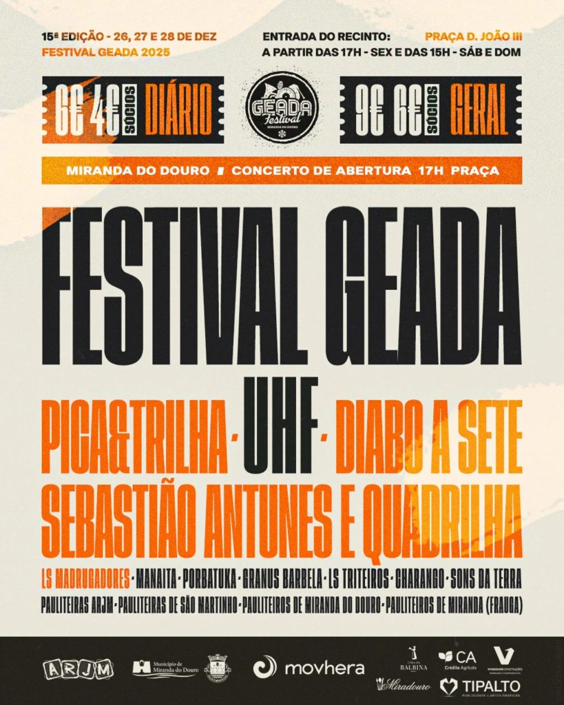 A banda UHF é o cabeça de cartaz do Festival de inverno “Geada”, que se celebra na cidade de Miranda do Douro, neste fim-de-semana de 26 a 28 de dezembro e tem outros destaques como a ronda das adegas pelo centro histórico, onde o público pode degustar produtos regionais da Terra de Miranda.