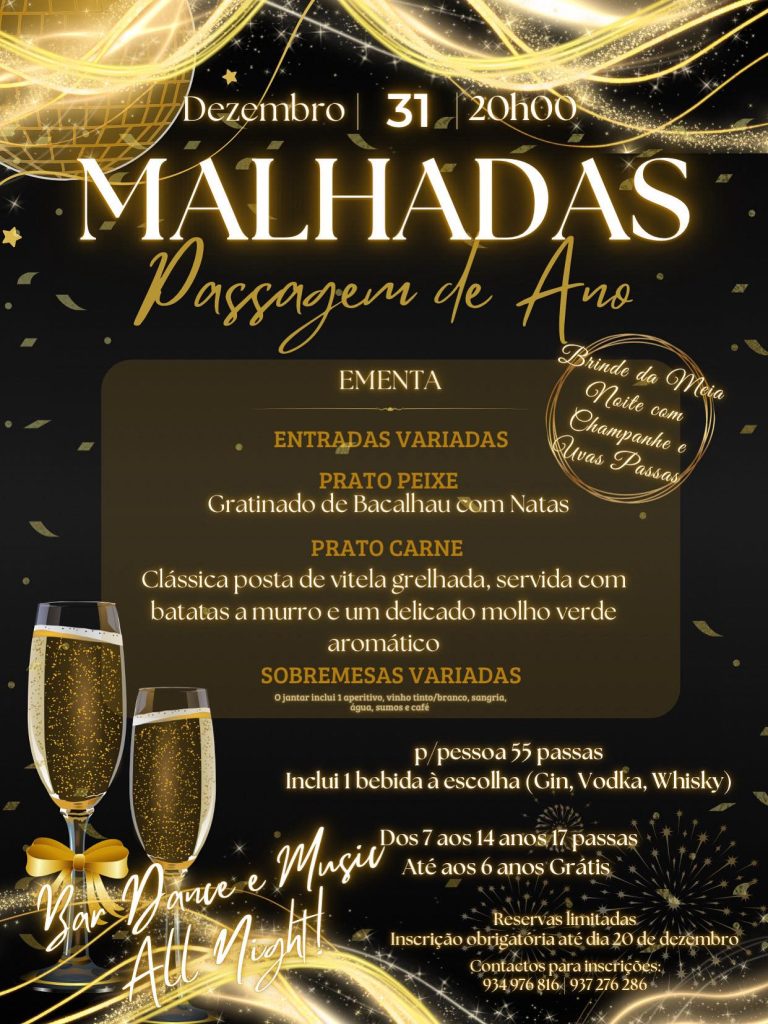 Finalmente, no dia 31 de dezembro, a passagem de ano em Malhadas celebra-se na Casa do Povo, com um jantar e animação musical, organizada pela comissão de festas em honra de Santa Bárbara.