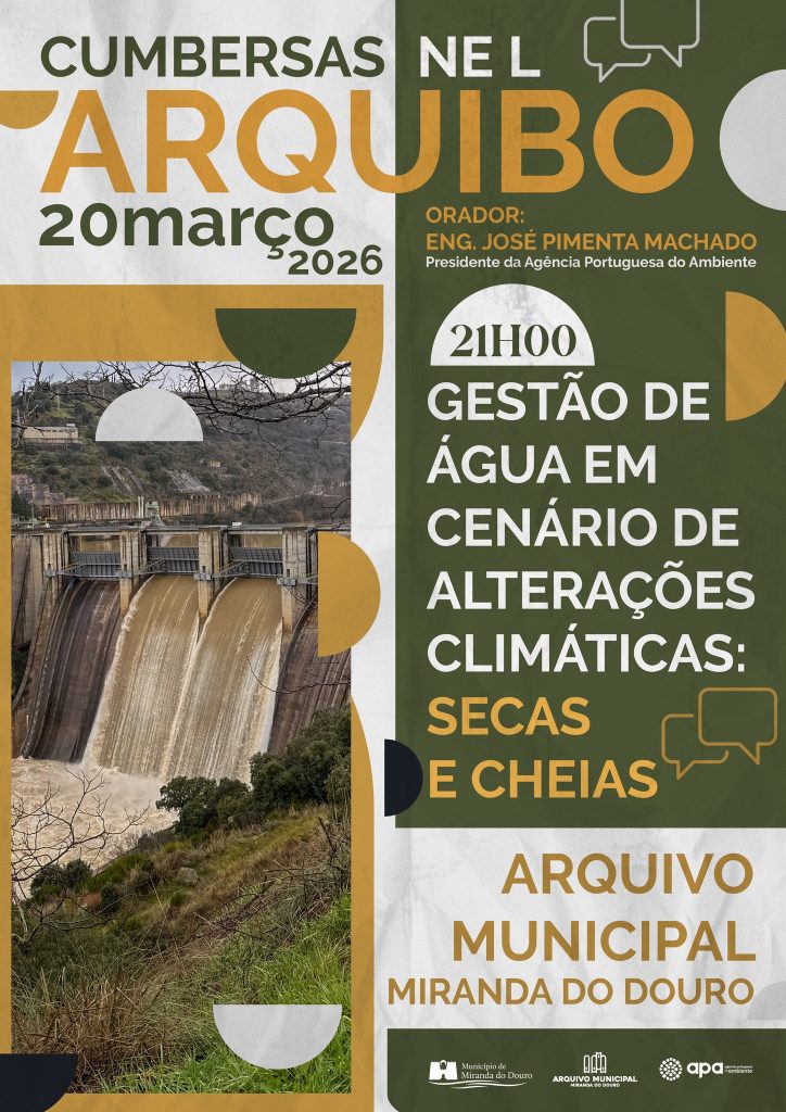 O Arquivo Municipal de Miranda do Douro recebe esta sexta-feira, dia 20 de março, às 21h00, a visita do presidente da Agência Portuguesa do Ambiente (APA), Pimenta Machado, para uma conversa dedicada ao tema da “Gestão da Água em Cenário de Alterações Climáticas: Secas e Cheias”.