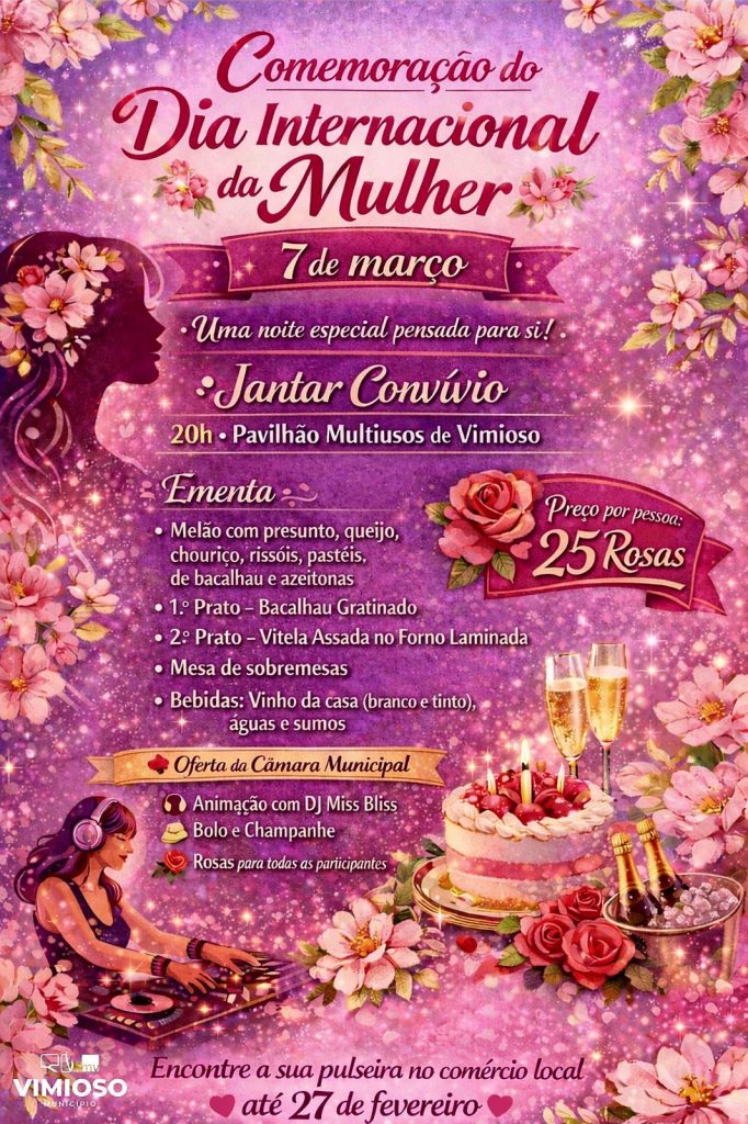 Para assinalar o Dia Internacional da Mulher, em Vimioso, o município organiza um jantar convívio, no serão de sábado, dia 7 de março, no pavilhão multiusos. A vice-presidente do município de Vimioso, Cristina Miguel, indicou que foram convidadas mulheres de todas as freguesias do concelho.