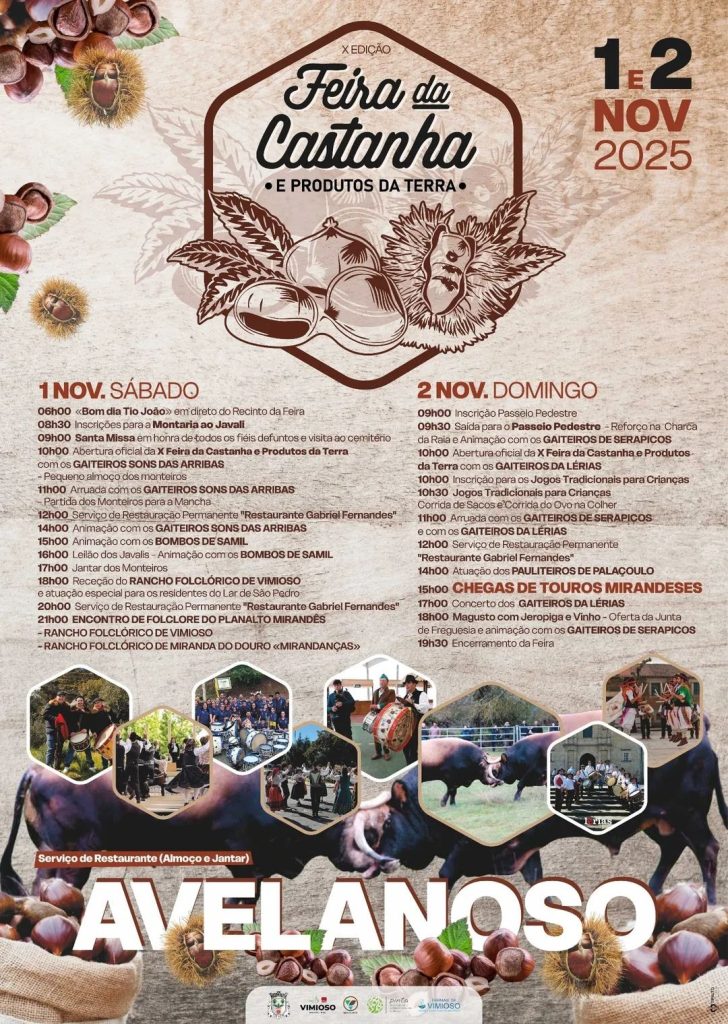 No fim-de-semana de 1 e 2 de novembro, a aldeia de Avelanoso, no concelho de Vimioso, organiza a já tradicional Feira da Castanha e Produtos da Terra, um evento que nesta X edição começa com a montaria ao javali, inclui um encontro de folclore, o II passeio pedestre, as chegas de touros e no encerramento o magusto comunitário.