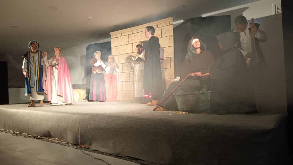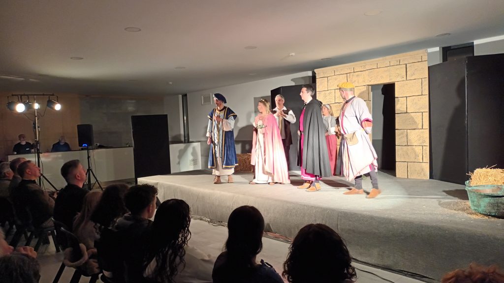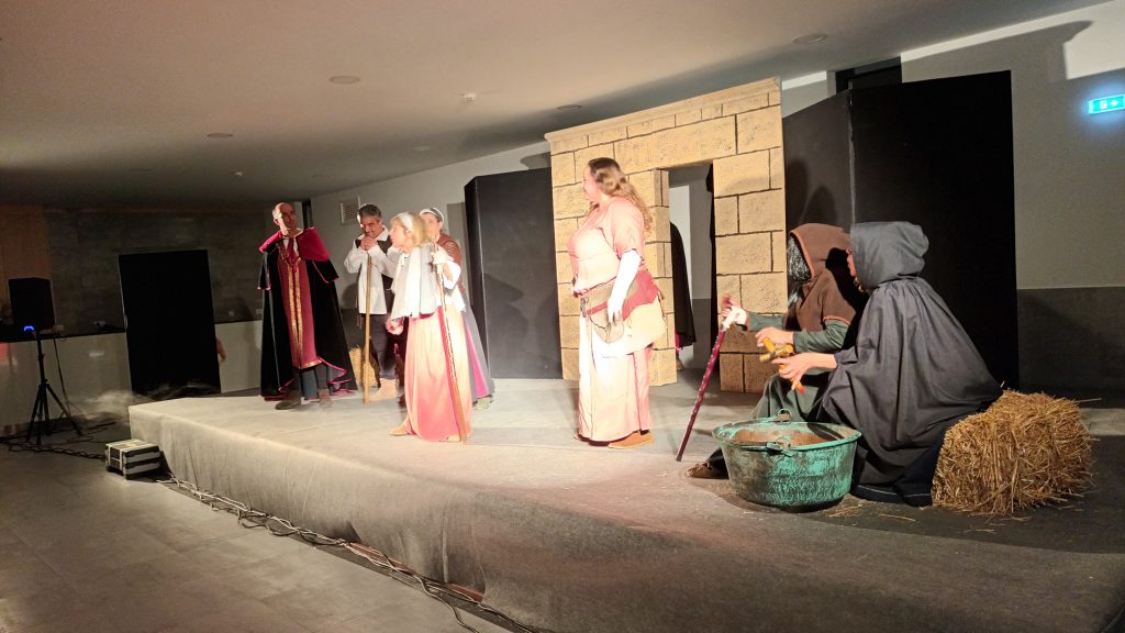 A representação teatral teve lugar no Centro de Promoção de Produtos Locais e Tradições, em Caçarelhos e a peça foi interpretada pelo Grupo Alma de Ferro. O grupo de Torre de Moncorvo representou a história de Violante Gomes, uma cristã-nova (descendente de judeus) que se casou secretamente com D. Luís de Portugal, sobrinho do rei D. Manuel I. Este casamento deu origem a D. António, Prior do Crato, que viria a ser Rei de Portugal, embora o seu reinado tenha sido curto e contestado.