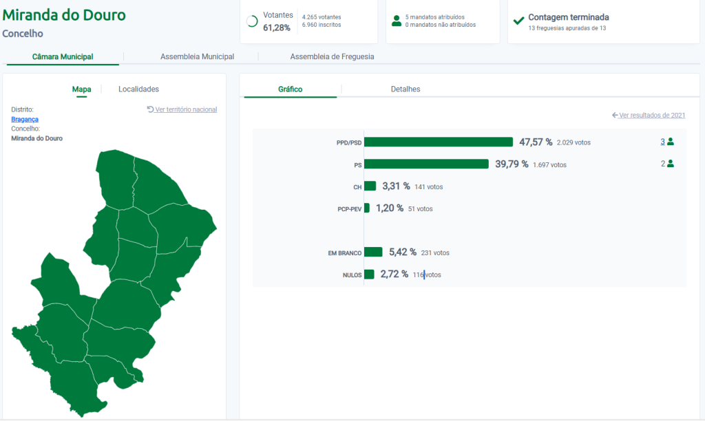 Nas eleições autárquicas, no concelho de Vimioso, participaram 3036 eleitores, mais 105 pessoas do que em 2021.