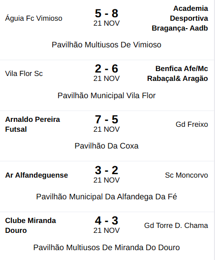 Na oitava jornada do campeonato distrital de futsal, o Águia Futebol Clube de Vimioso foi derrotado em casa por 5-8, no confronto com a Academia Desportiva de Bragança, num jogo em que os vimiosenses demonstraram sucessivos períodos de desconcentração e vários erros defensivos que deram origem a golos adversários.