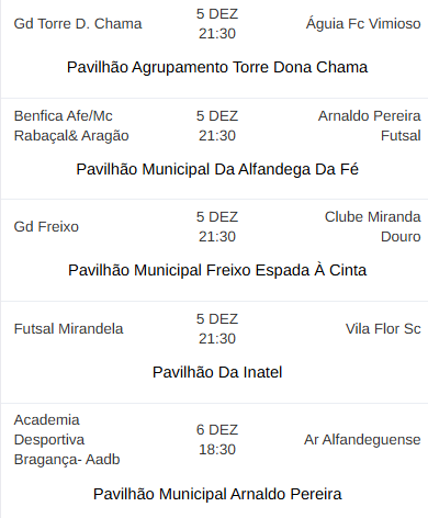 Próxima jornada (5 de dezembro)