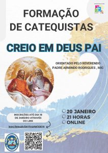 O Secretariado da Catequese da Diocese de Bragança-Miranda promove esta terça-feira, dia 20 de janeiro, pelas 21h00, uma ação de formação online para catequistas, subordinada ao tema “Creio em Deus Pai”.