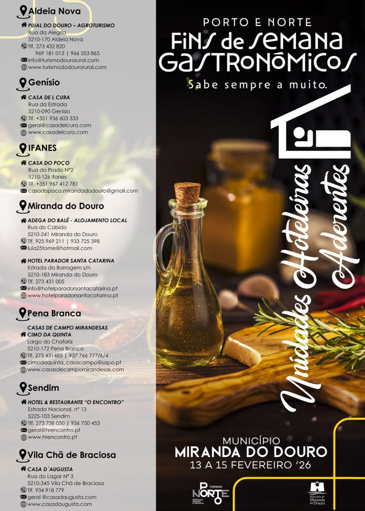 O Fim-de-semana Gastronómico é uma iniciativa conjunta do Turismo Porto e Norte de Portugal e do Município de Miranda do Douro e tem como objetivo convidar o público a descobrir a região da Terra de Miranda, através da gastronomia.