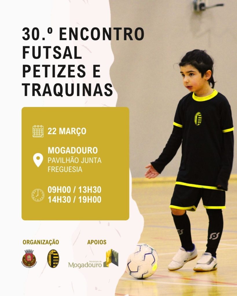 No próximo Domingo, dia 22 de março, o pavilhão da freguesia de Mogadouro, é o recinto do 30º Encontro de Futsal Petizes e Traquinas, um evento desportivo que tem como finalidade proporcionar a mais de 300 crianças, a prática desportiva do futsal.