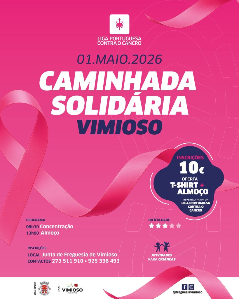 No feriado de 1 de maio, a Freguesia de Vimioso associa-se à Liga Portuguesa Contra o Cancro na organização de uma caminhada solidária que visa sensibilizar a população para a atividade física e simultaneamente apoiar a luta contra o cancro.
